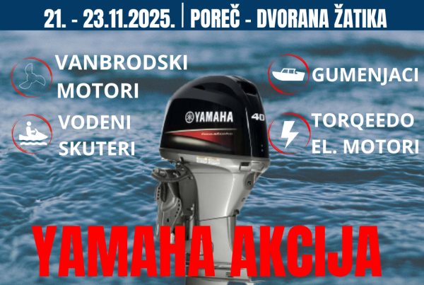 YAMAHA POSEBNI UVJETI – Rijeka Boat Show 25.–28.09.2025. Osim vrhunske kvalitete i beskompromisne pouzdanosti, pripremili smo za vas NEVJEROJATNE SAJAMSKE POPUSTE: Do -20% na vanbrodske motore Do -10% na vodene skutere Do -30% na YAM čamce Do -10% na…